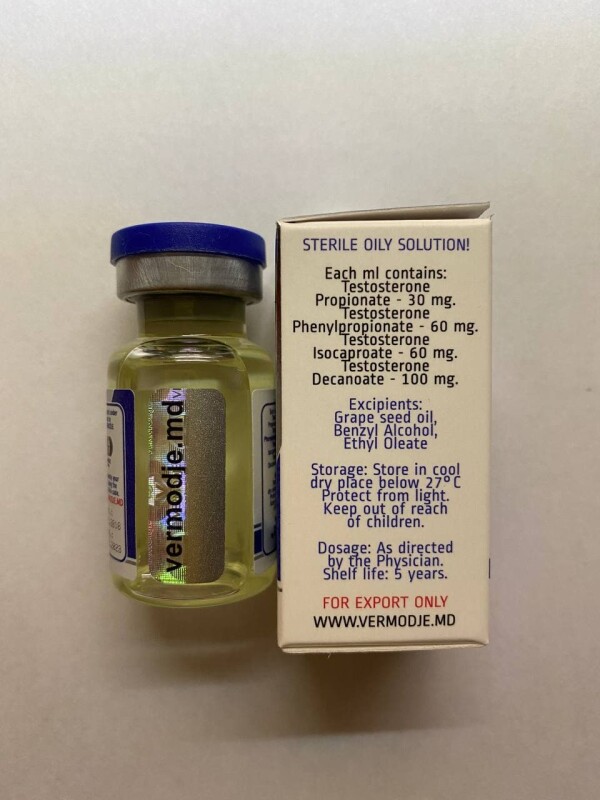 Sustaver 250 Vermodje 10 мл купити в Україні Sustaver Testosterone Mix 250 mg - спортивний стероїдний препарату, який представляє собою вдалий мікс 4 ефірів тестостерону. Розроблявся вченими як ефективний засіб з пролонгованим впливом на організм, оскільки кожен з компонентів має свій період дії, а спільно препарат працює в організмі спортсмена терміном до 1 місяця. Провівши курс Суставера, представник будь-якої спортивної дисципліни зможе стати володарем солідної чистої мускулатури, красивого рельєфу, підвищити показники витривалості, силові і багато інших. Характеристика препарату Sustaver 250 Vermodje спочатку використовувався в медицині як засіб при проведенні замісної гормональної терапії у пацієнтів, що мали проблеми з низьким рівнем тестостерону. До складу препарату входять такі ефіри: ⭐Тестостерон пропіонат⭐ - 30 мг. Період напіврозпаду становить від 1 до 2 діб. Тестостерон фенилпропионат - 60 мг. Період напіврозпаду - від 2 до 3 діб. Тестостерон ізокапроат - 60 мг. Період напіврозпаду - від 4 до 5 діб. Тестостерон деканоат - 100 мг. Період напіврозпаду становить від 7 до 9 діб. В якості спортивного стероїду, Суставер від компанії Вермодже наділений такими важливими для спортсменів властивостями: Анаболическая і андрогенна активність складають 100%; Час активної роботи всіх компонентів кошти в організмі становить від 3 до 4 тижнів; Період перебування препарату в структурі крові - до 90 діб; Не токсичний для печінки на курсі прийому; Чи не схильний до ароматизації, як більшість застосовуваних атлетами ААС. Курс прийому Sustaver 250 Vermodje соло Your browser doesn't support video. Please download the file: video/mp4 Перед тим, як почати курс прийому стероїдного препарату, настійно рекомендуємо відвідати спортивного лікаря і переконатися у відсутності у вас проблеми зі здоров'ям. Також не зайвим буде прочитати інструкцію, прикладену до Суставеру виробником. У ній вказані середні дозування, тривалість курсу, можливі побічні ефекти, протипоказання і інша важлива інформація. І, звичайно ж, препарат найкраще купувати на сайті, якому ви довіряєте, щоб отримати якісний і результативний стероїд. Перед початком курсу соло варто визначитися з 2 ключовими моментами: Підбір оптимальної для спортсмена дозування. Рекомендоване фахівцями середня кількість - від 250 до 500 мг на тиждень. На практиці, вибір дозування здійснюється так: любителям, початківцям спортсменам краще курсу препаратом в дозуванні від 250 до 500 мг на тиждень; профі часто підвищують тижневе кількість до 750 мг. Іноді вони колють препарат і по 1000 мг в тиждень, але це вже занадто багато і може бути чревате побічними ефектами. Вибір тривалості ⭐курсу соло⭐. Sustaver 250 Vermodje зазвичай приймається в середньому 6 - 8 тижнів. При цьому на практиці тривалість прийому визначається так: любителям і новачкам не слід використовувати препарат довше 6 тижнів; профі можуть Курс стероїдів в середньому до 8 тижнів, іноді проводять тривалі курси і від 10 до 12 тижнів, але це вже дуже небезпечно для здоров'я, а не тільки корисно...