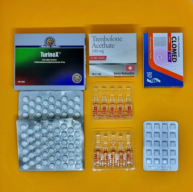 Курс на сушку Турінабол і Тренболон ацетат Не дивлячись на те, що вартість курсу Тренболон ацетат + Турінабол не є маленькою, вона повністю обґрунтована, так як запропонований курс - один з найефективніших, і кожен спортсмен може розраховувати на відмінний результат. Це саме те поєднання анаболічних препаратів, яке здатне зробити форму, про яку ви мрієте. Дана зв'язка стероїдів забезпечує помітний ріст м'язів і набір виключно якісної м'язової маси, який не супроводжується затримкою рідини. Навпаки, вода виводиться з організму, а такий процес завжди призводить до спалюванню жирових відкладень, тому курс зможе порадувати непоганий сушінням Так само варто розраховувати на збільшення силових показників, яке дасть можливість підвищити інтенсивність і результативність ваших тренувань. Поєднання в одному курсі Турінабола і Тренболон Ацетату допоможе зробити дійсно якісну форму без прояву побічних ефектів. Даний курс надає наступну дію: приріст якісної м'язово маси - 4-6 кг за курс; прибавка показників сили і витривалості до 25-30%; поліпшення рельєфу і венозности; підвищення щільності і жорсткості мускулатури; прискорення регенераційних процесів; виведення зайвої рідини з організму; тривале збереження результатів. Як правильно приймати курс Курс Турінабол і Тренболон Ацетат має тривалість 5 тижнів і не є складним. Він розрахований на спортсмена середнього рівня і прекрасно підійде всім, хто хоче зробити відмінну форму і отримати сухі рельєфні м'язи без зайвого жиру. Якщо ти хочеш грати, і не маєте достатнього досвіду, рекомендуємо розглянути курс Турінабол + Болденон. Даний курс може використовуватися і бодібилдерами, які хочуть зробити якісну форму перед змаганнями, і також силовиками, такими як пауерліфтери і важкоатлети. Таке поєднання анаболіків дозволяє на порядок збільшити силові дані і витривалість, дає можливість піднімати більш важкі ваги, при цьому атлет буде залишатися в своїй ваговій категорії. Запропоновані дозування добре підходять для спортсменів - любителів, чия вага не перевищує 85-90 кг. Дозування препаратів на курсі середні, але достатні для отримання відмінного результату без прояву побічних ефектів. Якщо ж ви більш досвідчений атлет, або маєте велику масу тіла, тоді дозування можна збільшити, але робити це потрібно поступово, оцінюючи своє самопочуття. Прийом Турінабола буде проходити за класичною драбинці від мінімальної дозування 20 мг. (2 таб.) В день на першому тижні курсу, 30 мг. в день на другому тижні і до максимальних 40 мг. (4 таб.) На добу на третьому тижні курсу. Після чого йде таке ж зниження дозувань до 3-х таб. в день на четвертому тижні і мінімальних 2 таб. на останній п'ятому тижні курсу, що гарантує плавний вихід з курсу і мінімізацію побочек. Це середня схема, яку широко використовують багато атлетів...