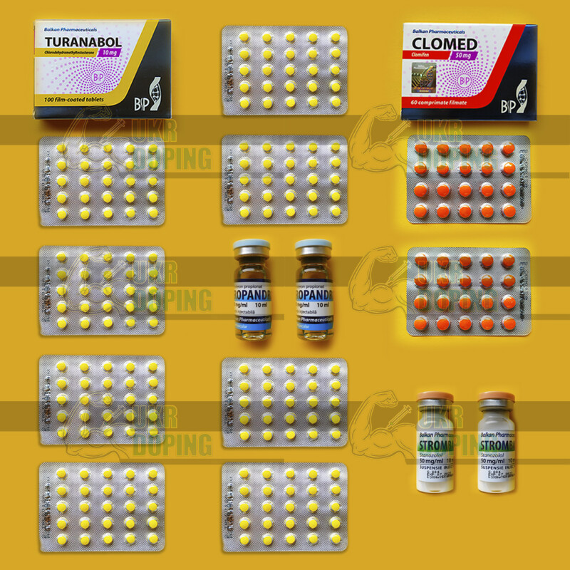 Курс на рельєф і сушку Турінабол + Вінстрол + Тестостерон Пропіонат Курс Турінабол + Вінстрол + Тестостерон Пропіонат є ефективним і результативним в плані сушки, поліпшення рельєфу і набору якісної м'язової маси. Якщо у вас є невеликий відсоток жирових відкладень, які важко прибрати, а м'язова маса стоїть на одному місці - то без сумнівів варто розглянути дане поєднання препаратів. Турінабол в парі з Пропіонатом спочатку дають приплив сил і витривалості. На перших тижнях м'язова маса практично не збільшується, але сила і витривалість ростуть з кожним днем, це основне завдання даних стероїдів. Як правило, з другого тижня на тренуваннях стає помітнішою збільшення мускулатури, яке з кожним тренуванням ставатиме яскравіше. Вінстрол, в свою чергу, прекрасно впливає на формування рельєфного тіла і виводить зайву рідину з організму, тому м'язова маса буде виглядати рельєфною і якісною. У цього стероїду дуже добре спостерігається ефект сушіння протягом усього періоду прийому. Але варто пам'ятати, що правильне харчування і тренування, найчастіше стають основними регуляторами одержуваного результату. Запропонований курс характеризується такими властивостями: збільшення силових показників; помітне зростання сухої м'язової маси; зниження відсотка жирової маси; виведення води з організму; посилення рельєфу і венозности; поліпшення твердості та щільності мускулатури; прискорення відновлення організму після тренувань; більш швидке загоєння травм і розтягувань; підвищення рівня кисню в м'язах; відмінне збереження всіх результатів. Як правильно приймати курс Цей варіант курсу добре підходить більш досвідченим спортсменам і розглядати його новачкам на перший або другий курс не рекомендується. Для таких випадків можна розглянути відмінний варіант, як наприклад курс Турінабол + Пропіонат, який давно перевірений багатьма спортсменами і на ефективність і відсутність побічних ефектів. Запропонований курс розраховується на 8 тижнів, цього вимагають самі препарати, оскільки вони не є дуже сильними і хороший результат приносять при більш тривалому курсі. Прийом Турінабола починається з першого дня курсу і здійснюється щодня протягом 8 тижнів. Для цього нам знадобитися 200 таб., Або 2 пачки. Так як курс розрахований на більш досвідчених атлетів, немає сенсу починати прийом з маленьких доз. Турік починаємо приймати по 3 таб. на добу на першому тижні курсу, після чого приймаємо практично рівним фоном по 4 таб. в день до самого кінця. Тільки після 6-го тижня знижуємо дозування до 3-х таб. на сьомому тижні і 2-х таб. в день на останній восьмому тижні, що забезпечує нам плавний вихід з курсу. Добове дозування краще розбивати на цілий день рівномірно, а не приймати все за один раз. Прийом до їжі або після не має особливого значення...