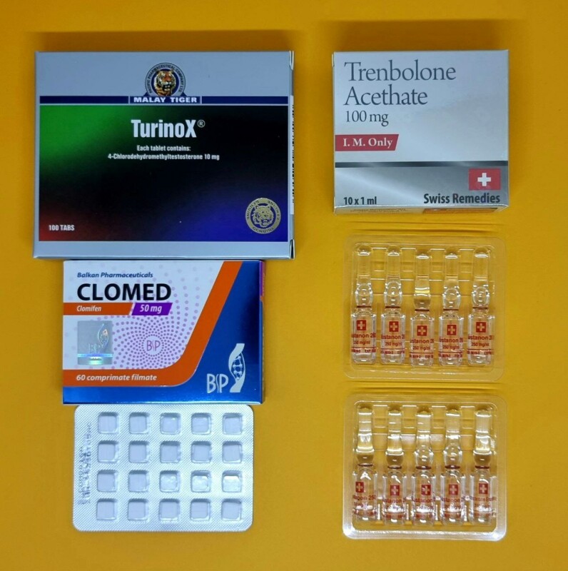Курс Турінабол та Тренболон ацетат на масу і рельєф Багато спортсменів, часто шукають готовий курс на сушку і масу, яка змогла б помітно збільшити м'язові обсяги і прибрати жировий прошарок. Підібрати подібне поєднання анаболічних стероїдів, яке змогло б дати реальний результат, дуже важко. На практиці, ми можемо зустрічати подібні курси, спрямовані на сушку і масу, але їх ефективність часто дуже незначний. Це обумовлено підбором м'яких і безпечних стероїдів, які дають певний результат, але в пріоритеті не у них - не завдати шкоди організму. У разі, коли пройдені курси не дають бажаного результату, багато хто починає звертати увагу на використання більш сильних анаболіків, які повинні помітно збільшити результати. Курс Турінабол і Тренболон ацетат,можна віднести до розряду ефективних і в міру сильних стероїдів. Тренболон вважається базовим стероїдів, який займає лідерську позицію серед сильних ін'єкційних препаратів. Його основна дія спрямована на збільшення сили і витривалості, а так само досить результативний приріст сухої мускулатури. Дуже часто цей анаболик використовується в курсах на сушку, адже його характеристики чітко дають зрозуміти, що спалювання жиру присутній завжди. Ефекти, які дає запропонований курс: хороший приріст м'язової маси - до 7 кг за курс; збільшення сили і витривалості; посилення рельєфу і сечённості м'язових волокон; надає щільність і жорсткість м'язів; відчутний жіросжігательний ефект - за умови дотримання дієти; прискорення відновних процесів в організмі; відмінне збереження результатів після курсу. Як правильно приймати курс Спочатку варто звернути вашу увагу, що всі курси складаються в більшій мірі для спортсменів аматорів з ваговою категорією від 70 до 85 кг. Дозування за курсом розраховуються не завищені, а середні і підходять для новачків і атлетів середнього рівня підготовки. В першу чергу, спортсмен, який збирається купити Турінабол і Тренболон, повинен розуміти, що використовує сильний курс. У перші дні прийому, відчутного ефекту може і не бути, але через 7 - 10 днів спортсмен повинен відчути поступовий приплив сили і витривалості. В подальшому прийомі даних анаболіків, ці ефекти будуть тільки збільшуватися, а ще через кілька днів буде помітний ріст м'язів. Приріст мускулатури, спортсмени відзначають у відгуках, досить помітний в свою чергу м'язи виходять сухими і жорсткими. Весь позитивний ефект дії курсу, буде добре помітний на тренуваннях. Ви зможете більш інтенсивно працювати з важкими вагами і постійно збільшувати робочі кілограми. На тлі збільшення працездатності, буде помітний і жиросжигающий ефект, але його бажано підтримувати дієтою і прийомом спортивного харчування. Зробіть акцент на прийомі ізолятів, амінокислот і вітамінів, уникайте гейнери і великої кількості вуглеводів...