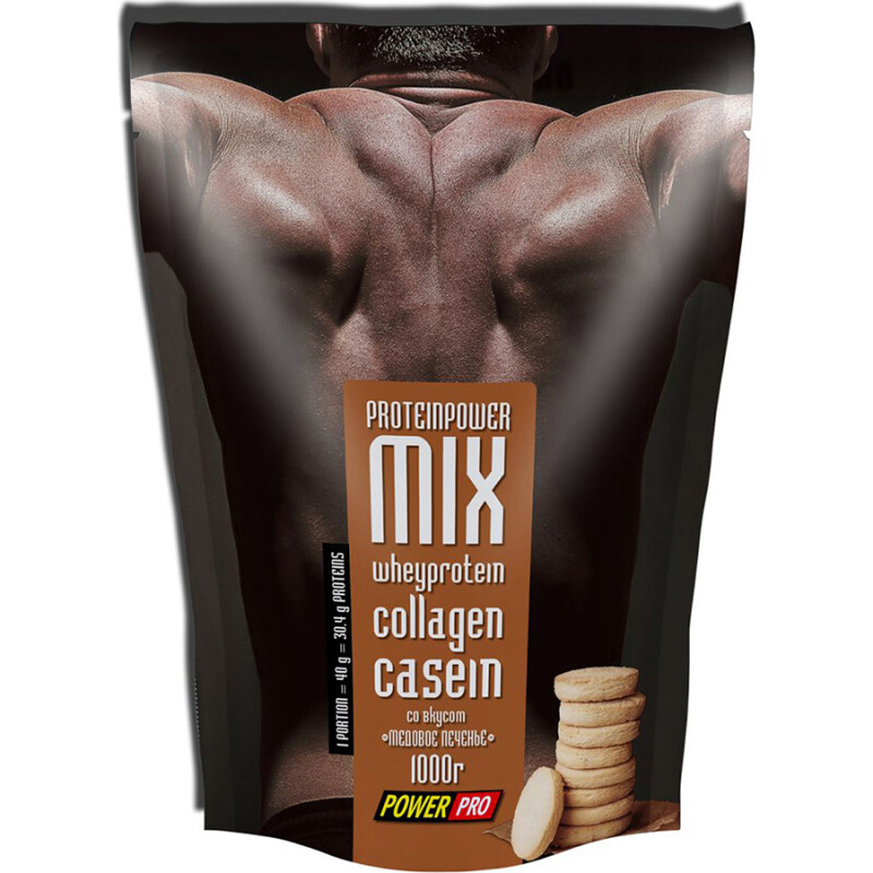 Протеїн Power Pro зі смаком медового печива 1кгПредставляємо вашій увазі унікальний продукт - комплексний Protein Mix від PowerPro.Виробник подбав про наявність в його складі протеїну, а також казеїну і колагену. Протеїн збалансований за складом, в нього включені різні за складністю і часу засвоєння організмом типи білка.Даний протеїн дозволяє спортсмену отримати помітний ріст м'язів на силових тренуваннях. Додатково варто купити дане спортивне харчування зі стероїдами на якість Туринабол таблетки, або Станозолол,що на багато сильніше активізує приріст мускулатури і сили. Протеїн варто приймати 2 - 3 рази на день між основними прийомами їжі і після важких фізичних навантажень.Опис і склад протеїнуСмачний і поживний протеїновий коктейль з приємними нотами медового печива дозволить вам наситити організм корисними речовинами, отримати бажану солідну мускулатуру, відмінний рельєф, підвищити життєвий тонус, поліпшити витривалість, прийти в норму після проведення тренувань. У продукті ви не знайдете шкідливих жирів, а в кожній порції з приємним смаком медового печива міститься всього лише 159 ккал.Продукт складається з трьох основних компонентів, до яких додано комплекс важливих амінокислот. У протеїн включений казеїн, як білок зі складним складом, який має ряд переваг. Він забезпечує надходження амінокислот, сприяє якісному метаболізму, робить м'язи сильними і здоровими, знижує відчуття голоду. Контроль за станом сполучних тканин здійснює гідролізат колагену. Він відповідає за рухливість зв'язок і суглобів, а також кісткової тканини. Завдяки наявності в складі продукту колагену ваша шкіра, нігті і волосся будуть здоровими. Урсулова кислота не дає м'язам старіти і слабшати, контролює наявність цукру і корисного холестерину в крові. Лецитин піклується про нервову систему, нормалізує обмін жирів. Відмінний швейцарський комплекс вітамінів, що належать до груп B, C, E, PP, дозволить не тільки мати стійкий імунітет, але і забезпечити клітини енергією.Особливості та рекомендації щодо застосуванняКупить Протеїн Mix медове печиво в Україні коштує тому, що він є одним з кращих комплексних продуктів для нарощування мускулатури і отримання вражаючого рельєфу. Ще вживання поживної коктейлю перед сном або між прийомами їжі дозволить отримати ідеально збалансований білковий склад, ряд важливих вітамінів, за невеликий проміжок часу засвоюється організмом. Подарує вам енергію і буде бажаним напоєм завдяки приємному смаку медового печива.Радять вживати з метою отримати хорошу прибавку мускулатури, збільшити показники витривалості і без проблем відновити сили після тренувань, знизити показники холестерину до мінімальних, нормалізувати обмінні процеси і мати гарне тиск, поліпшити апетит, провести профілактику зношуваності м'язів...
