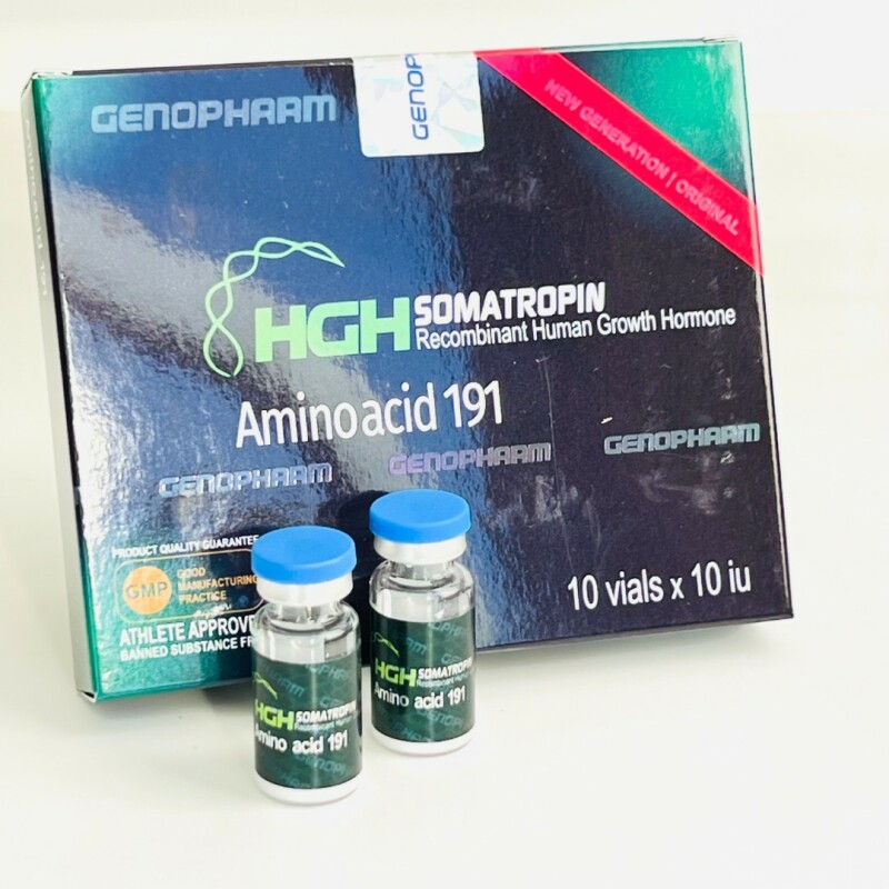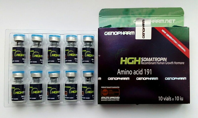 Соматропін Генофарм Гормон Росту 191 Amino У пачці 10 флаконів, у кожному флаконі по 10 ОД. у сухому вигляді, потрібно розводити водою для ін'єкцій. У середніх дозах вистачає однієї пачки на 20 днів. HGH Самотропін 191 Amino Acid від Ізраїльської фірми GenoPharm сьогодні можна купити в Україні післяплатою. Кращий універсальний Гормон Роста, який дає можливість спортсмену набирати м'язову масу і в той же час отримувати ефективне сушіння. Більшість професійних атлетів використовують якісний гормон росту, це дає можливість отримати максимальний приріст м'язової маси і без особливих зусиль спалити не потрібні жирові відкладення по всьому тілу. Саме цими властивостями і володіє самотропіном від фірми Генофарм. Завдяки високій якості своєї продукції спортсмен отримує правильний результат. Препарт повністю виправдовує свою ціну та займає лідерські позиції на ринку Гормона Роста по всій території України. Рекомендації щодо курсу Гормону зростання від фірми ГеноФарм залишаються як і в інших виробників від 3 місяців і більше. Але на практиці спортсмени любителі використовують подібні препаарти протягом 8 тижнів з додатковим курсом анаболічних стероїдів, для посилення ефекту. Приймають подібний Гормон Роста по 10 ОД через день. Крім застосування у спорті стероїдних препаратів, харчових добавок, жироспалювачів та багатьох інших засобів, що сприяють професійному зростанню та прогресу, сучасні атлети активно застосовують у практиці Гормон росту. Даний препарат незамінний у справі нарощування якісної мускулатури, допомагає спортсмену відновлюватись після інтенсивних тренувань, сприяє зміцненню суглобів та зв'язок. Важливо знати все про правильне застосування Гормону росту, про що ми розповімо далі. Історія появи та застосування в медицині Гормон росту, який також відомий як соматропін, соматотропін, соматотропний гормон, СТГ, ГР, HGH, спочатку знайшов своє застосування у медичній сфері. Там його успішно використали ще з 50-х років минулого століття. У спорті препарат став використовуватися атлетами через десятиліття, 1982 року. Хоча деякі джерела стверджують, що популярність у спорті Гормон зростання став набувати з Олімпіади в Лос-Анджелесі, проведеної 1984 року. Свою назву Гормон зростання отримав від латинського терміна сома, що буквально перекладається як тіло. Сьогодні даний раніше медичний препарат відомий своїми властивостями загоювати рани, регулювати витрати енергії, знижувати кількість підшкірного жиру, стимулювати ефект омолодження, а також зростання кісток та їх зміцнення у молодому віці, зміцнювати імунітет тощо. Застосування у спорті та ефективність Спочатку Гормон зростання приймали представники силових видів спорту: штангісти; пауерліфтери; метальники молота; штовхачі ядра. В даний час Гормон зростання є результативним для представників різних спортивних дисциплін, оскільки ефектами від його прийому стають: Зміцнення зв'язкового та суглобового апарату...