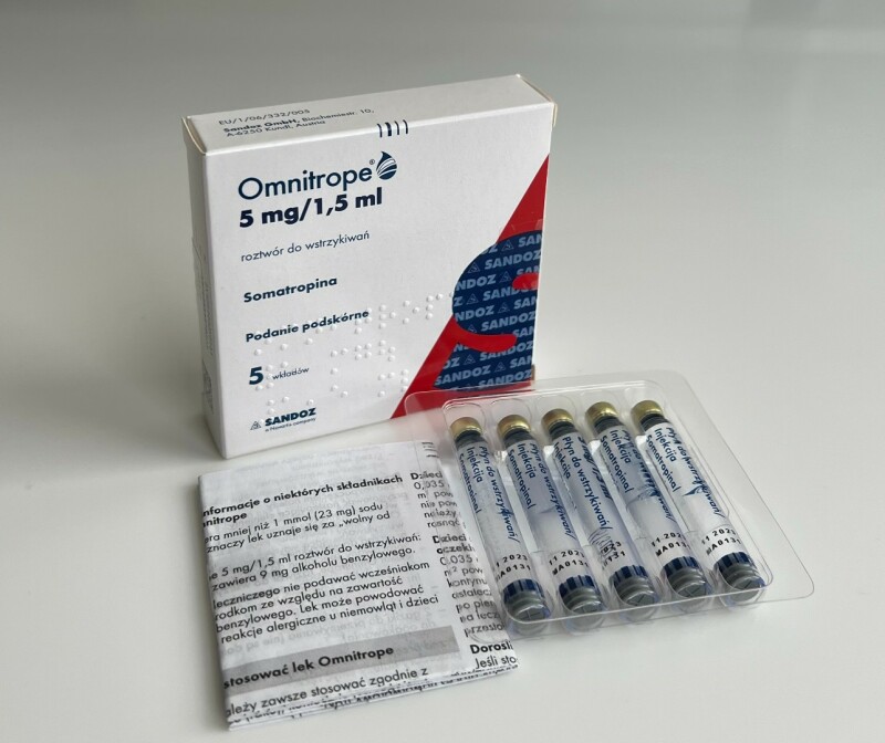 Гормон Омнітроп Сандоз (Самотропін) 75 IU/од Гормон Росту Омнітроп від виробника Сандоз вважається високоякісним препаратом який володіє високим ступенем результативності. Виробляється заводом в Австрії на сучасному оборудывании. В упаковці 5 флаконів, (5мл), На 1 ампулу 15ЕД дозування. Відповідно в пачці на 5 ампул доводиться 75ЕД. Щоб постійно прогресувати в професійному плані, кожному досвідченому і починаючому спортсмену на певному етапі доводиться приймати анаболічні стероїди. Правильне використання представників ААС та інших спортивних препаратів допоможе будь-якому атлетові стати на порядок сильніше, витривалішими, наростити суху мускулатуру, отримати промальований рельєф. Гормон росту Sandoz Omnitrope 75 IU/од. (Австрія) багато років успішно застосовується в спортивному світі для формування презентабельною, позбавленої рідини і жиру, твердою і щільною мускулатури. Що собою являє Гормон росту Гормон росту має і інші відомі назви: Соматотропін; Соматотропний гормон; Соматотропін; ГР; СТГ; HGH. Гормон росту Sandoz Omnitrope являє собою пептидний гормон. Його вироблення відбувається в передній частці гіпофіза. Цей важливий людський гормон не тільки позитивно впливає на виробництво білка, регуляцію обміну вуглеводів, а також бере активну участь у роботі багатьох органів і систем. Якщо у людини спостерігається м'язова слабкість у дорослому віці, порушений ріст волосся, є остеопороз, є затримка росту в дитячому віці і так далі, йому потрібно здати аналіз на кількість соматотропіну в організмі. Вироблення власного Гормону росту Гормон росту називають гормоном молодості. Краще всього він виробляється під час повноцінного нічного сну і виконання фізичних вправ. Щоб забезпечити високу концентрацію соматотропного гормону в крові, спортсмену слід виконувати такі рекомендації: Нормально висипатися – в середньому це 8 – 9 годин спокійного нічного сну. Відхід до сну не пізніше 23.00 години. Давати на організм посильні фізичні навантаження. Регулярні силові тренування атлетів у допомогу. Забезпечити надходження в організм будівельного компонента білка допомогою корекції щоденного харчового раціону. Також корисний прийом амінокислот, а саме лізину, глутаміну, аргініну, орнітину. Контролювати рівень цукру в структурі крові. Стежити за гормональним фоном, тобто перевіряти кількість тиреоїдних гормонів, а також естрогенів, соматолиберина і так далі. Не допускати тривалих стресів, що згубно впливають на концентрацію гормону росту в організмі. Курс прийому Гормону росту Sandoz Omnitrope в спорті При виборі дозування для проведення курсу Гормону росту соло спортсмену слід пам'ятати, що вміст даного гормону в 1 ін'єкції в нормі не повинно перевищувати 30 МО. В основному середня робоча дозування для курсу кожного атлета підбирається в індивідуальному порядку: Силовикам і іншим спортсменам можна вводити по 10 – 30 МО препарату на добу...