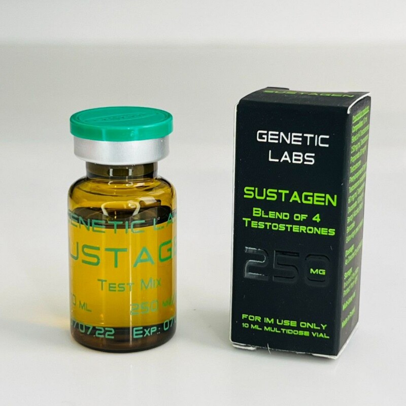 Сустанон 250 Genetik Labs 10мл флакон (Європа) Оскільки початківці і досвідчені спортсмени, представники різних видів спорту, на певному етапі своїх регулярних тренувань розуміють, що ресурси організму не безмежні, вони вдаються до допомоги анаболічних стероїдів. Такі унікальні і багатокомпонентні препарати, як Сустанон 250 Genetik Labs, від Європейського виробника, дозволяють швидко і без шкоди для здоров'я наростити якісну і суху мускулатуру, сформувати промальований рельєф, стати на порядок сильніше і витривалішими. Склад препарату Сустанон - 250 Даний препарат складається з 4 основних ефірів тестостерону, який вивільняється в структурі крові в свій час. Завдяки різній швидкості всмоктування кожного з компонентів продукту, Сустанон Genetik Labs чинить на організм атлета пролонгована дія загальною тривалістю до 7 діб. До складу препарату Сустанон 250 Genetik Labs входять такі ефіри Тестостерону: Деканоат в кількості 100 мг; Изокапроат в кількості 60 мг; Фенілпропіонат – також 60 мг; Пропіонат – 30 мг. Форма випуску даного засобу – 10 мл у флаконах по 250 мг або мл. Стероїдний профіль Сустанону Сустанон як спортивний препарат має такі характеристики: Анаболічний показник визначений фахівцями в розмірі 100%. Андрогенний показник ідентичний і також становить 100%. На курсі прийому засіб достатньою мірою тимчасово пригнічує роботу осі під назвою гіпоталамус-гіпофіз-яєчка. Препарат не є гепатотоксичным, тобто не викликає у процесі використання збоїв у роботі печінки. Період перебування основної діючої речовини в крові максимально становить до 3 місяців. Курс прийому Сустанону 250 Genetik Labs Перед початком курсу ін'єкційного препарату кожен спортсмен в індивідуальному порядку вирішує, в якій середньої робочої дозуванні і протягом якого періоду він буде застосовувати цей засіб для свого подальшого спортивного прогресу. На практиці курс прийому Сустанону Genetik Labs соло виглядає приблизно так: Середня оптимальна дозування. Зазвичай вибирається атлетом з діапазоні 250 – 500 мг в тиждень. При цьому новачкам можна курсить стероїдом у кількості 250 мг, може трохи більше. Тоді як професіонали, які мають за плечима багаторічний досвід тренувань і прийому ААС, нерідко колють стероїд по 500 і лажі 750 мг; Тривалість курсу Суста соло. У спортивній практиці курс соло за участю препарату Сустанон в нормі тривати максимум до 10 тижнів. Якщо досвідчений атлет в індивідуальному порядку вирішує проводити його довше, рекомендуємо паралельно зі стероїдом вводити Гонадотропін; Частота проведення ін'єкцій. Сустанон дуже популярний в спортивних колах, оскільки його застосування виключає часте виконання уколов. Відповідно до інструкції від виробника, даний продукт досить вводити 1 раз на 7 діб, тобто один раз в тиждень, що дуже зручно. Як вже зазначалося вище, такий частоти достатньо, оскільки препарат входять 4 ефіру тестостерону з різною тривалістю впливу на організм, а всі разом вони здатні справляти тривалий вплив; ПКТ після курсу...