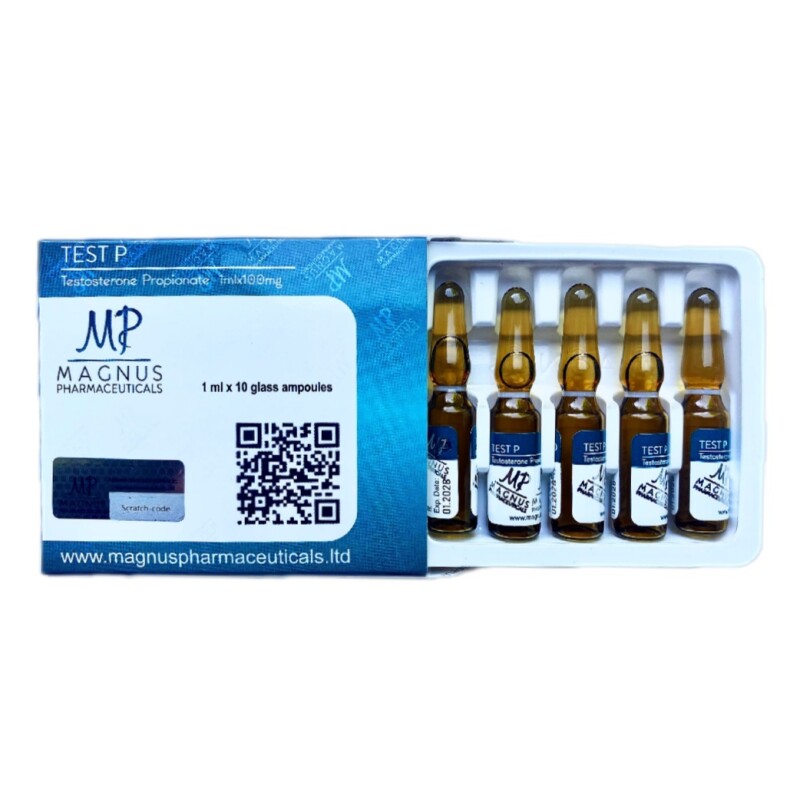 Ціна за 1 ампулку. Дозування 100мг. на 1мл. Продається по 1 ампулі. В пачці 10 ампул. Тестостерон Пропіонат – 100 (Magnus) в ампулах. Для підвищення спортивних показників на певному етапі своїх занять спортом досвідчені атлети вдаються до розумного використання препаратів. Їхній курс дозволяє стати на порядок сильнішим, витривалішим, наростити мускулатуру, сформувати рельєф і так далі. Спільно з прийомом засобів необхідно дотримуватись спеціальної дієти і регулярно відвідувати планові тренування. Одним з ефективних спортивних препаратів є Тестостерон пропіонат 100 Magnus, про особливості прийому та властивості якого ми розповімо у цій статті. Історія появи Тестостерон є основою багатьох стероїдних препаратів, створених синтетичним шляхом. Саме завдяки йому за різних змін формули даного гормону вченим вдалося синтезувати всі представлені на сучасному ринку спортивної фармакології стероїди. Тестостерон пропіонат вдалося відкрити в 1936 році, ще через рік він був дозволений до застосування в медичних цілях. Його призначали чоловікам за наявності дефіциту тестостерону, який був спровокований андропаузою чи гіпогонадією. У медицині препарат успішно застосовувався до 1960 року, і потім опинився у арсеналі спортсменів. Стероїдний профіль Залежно від країни та компанії, яка виробляє препарат, ⭐Тестостерон⭐ пропіонат представлений на фармакологічному ринку під різними торговими марками: Пропожект, Пропандрол, Тестовер, Тестогед, Пропіонат тощо. Стероїдний профіль Тестостерону пропіонату включає ряд характеристик: Анаболічний та андрогенний показник становлять 100% кожен. Період на організм – до 3 діб. Час виявлення у крові – до 60 діб. Виражено придушення осі гіпоталамус-гіпофіз-яєчка, ароматизація висока. Також на курсі прийому азотистий баланс змінюється на позитивний бік, збільшується число ІФР, тобто інсуліноподібного фактора зростання, відбувається м'язове відновлення. Курс Тестостерон пропіонат соло Magnus Your browser doesn't support video. Please download the file: video/mp4 Курс прийому для спортсменів-початківців і жінок вона не повинна перевищувати 50 мг через день. Досвідчені атлети найчастіше курсують стероїдом у кількості близько 100 мг за день. Стандартний ⭐курс⭐ прийому зазвичай обмежений 6-8 тижнями. Профі в індивідуальному порядку нерідко приймають пропіонат терміном до 10 тижнів, але це небажано через навантаження на організм і можливу побічні ефекти. На курсі бажано приймати Провірон або засоби, що є інгібіторами ароматази, стартуючи з другого тижня курсу стероїду. На виході з курсу ААС рекомендуємо приймати блокатори кортизолу, які мінімізують феномен відкату та забезпечать безпеку набраної мускулатури. ⭐ПКТ⭐ після курсу тестостерону пропіонату соло зазвичай проводиться за допомогою прийому антиестрогену Тамоксифену...