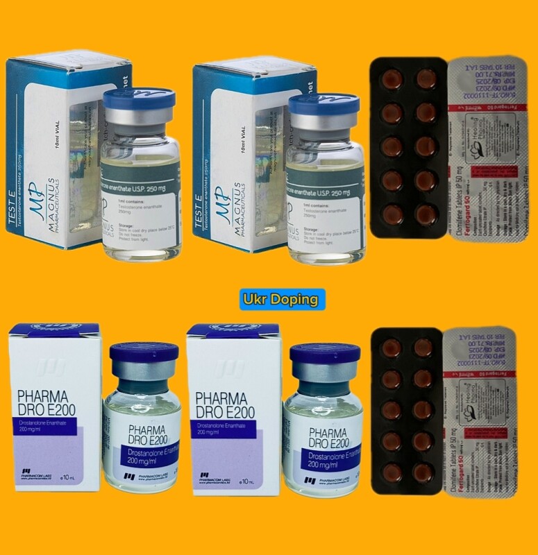 Курс Тестостерон + Мастерон на масу і силу Курс Тестостерон Енантат + Мастерон Енантат на 10 тижнів більше підходить для досвідчених спортсменів. Призначений для набору "якісної" м'язової маси, підвищення силових показників, збільшення витривалості. Якщо вас цікавить додатковий ефект сушіння, це можливо достить за рахунок збалансованого харчування і правильно поставленого тренувального процесу. Основні ефекти на курсі Тестостерон + Мастерон: Набір якісної м'язової маси ( 7 – 10 кг); Збільшення сили на 35%; Підвищення витривалості на 30%; Поліпшення апетиту; Підвищення синтезу білка в м'язах; Швидке відновлення після тренувань; Збільшення тестостерону в організмі; Підвищене лібідо протягом курсу. Тестостерон Енантат + Мастерон - це відмінна комбінація ін'єкційних препаартов, які добре підходять один одному і дають правильний результат. Обидва препарати мають ефект накопичення, тому робота курсу починає вступати в активну, відчутну фазу після 2 тижнів прийому. По мірі накопичення Тестостерону і Мастерона в організмі, результативність курсу буде постійно посилюватися, поки не вийде на свій максимальний пік. Подальший прийом препарату буде підтримувати постійну анаболічні та андрогенную активність в організмі спортсмена. Основні ефекти і як рекомендують приймати курс Запропонований курс розрахований на 10 тижнів - це прийом Мастерона і Тестостерону. По закінченню курсу, рекомендується зробити перерву 2 тижні, потім почати прийом після курсовго препарату (ПКТ). Для ПКТ використовується Кломид і він входить в курс. Тестостерон Енантат – у даний курс входить в кількості 20мл - це 20 кубиків на 20 внутрішньом'язових ін'єкцій, по 1 мл на 1 ін'єкцію. Дні для проведення внутрішньом'язових ін'єкцій Тестостерону: (Кожен Понеділок 1мл - це 250мг. + Кожен Четвер 1мл - це 250мг.) Протягом всього курсу саме по цих днях використовується Тестостерон Енантат. Час для проведення внутрішньом'язових ін'єкцій ви можете вибрати самі. У будь для вас зручно який час дня, незалежно від тренувань. Рекомендується використовувати шприц на 5мл для внутрішньом'язових ін'єкцій. Але спортсмени найчастіше використовують шприци на 2мл зі стандартною голкою (інсулінову голку використовувати заборонено). Тестостерон Енантат починає поступово спрацьовувати після 2 тижнів курсу. Його ефективність почне плавно посилюватися. Препарат дає можливість отримати хороший приріст м'язової маси і сили. Від частини схильний до затримки рідини. У помірних дозах процес ароматизації не є підвищеним і не вимагає прийому препаратів для купірування небажаних ефектів. Якщо у вас спостерігається підвищена затримка рідини або ознаки Гінекомастії, в такому випадку краще здати аналізи на Пролактин і Естрадіол. Визначити наявність проблеми і підібрати правильний препарат для нормалізації гормонів (це в рідкісних випадках)...