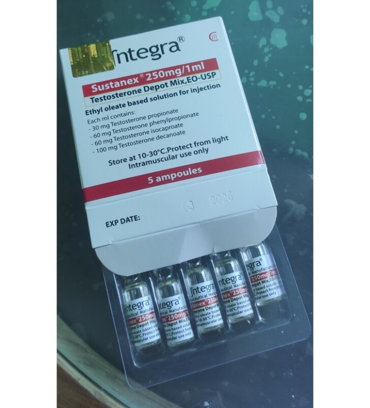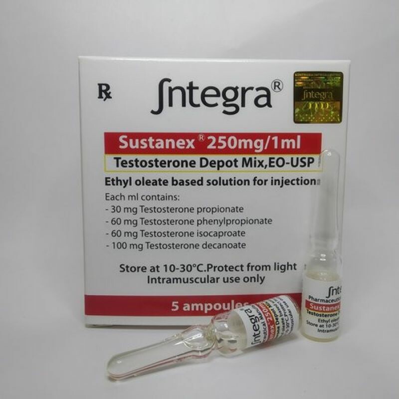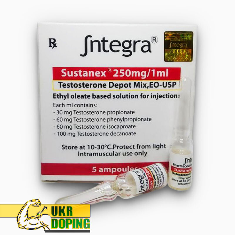 Купити Сустанон 250 (Integra) Греція в ампулках Сустанон 250 (Integra) Греція в ампулках добре підходить для набору м'язової маси, збільшенню силових показників і підвищення витривалості. Завдяки тому, що до його складу входить 4 різних ефіру тестостерону, які спрацьовують по черзі один за одним, досягається швидкий ефект і збільшується швидкість спрацьовування препарату. Вже на 2 тижні курсу, Суст дає добре про себе знати. Цей препарат рекомендується поєднувати практично з усіма таблетованими анаболічними стероїдами. У такому випадку ефективність курсу збільшується в 2 рази. Дозування Сустанону 250 Integra для спортсмена-любителя з середньою вагою рекомендується 500 мг у тиждень, 2 ін'єкції по 1 мл. препарату. На практиці дана дозування найпопулярніша і часто використовувана. Колоти Сустанон 250 всього 1 раз в тиждень по 250 мг може виявитися дуже мало і ефект буде практично не помітний. Так само більш досвідчені спортсмени застосовують більш високі дози по 750 і 1000 мг у тиждень. Це не є безпечно і новачкам не рекомендується. До складу препарату Сустанон 250 входять такі ефіри тестостерону: Деканоант в кількості 100 мг. Изокапроат та фенілпропіонат – по 60 мг кожен. Пропіонат – 30 мг. Також до складу додані такі допоміжні компоненти, як бензиловий спирт і арахісове масло. Оскільки кожен ефір вивільняється в організмі в свій час, в загальному період дії препарату може скласти від 3 до 4 тижнів. Стероїдний профіль Сустанон 250 Integra З основних характеристик стероїдного препарату можемо назвати наступні: анаболічний показник – 100%; андрогенний ідентичний анаболічну – 100%; час перебування основної діючої речовини у структурі крові – не більше 3 місяців; на курсі прийому досить виражене пригнічення осі під назвою гіпоталамус-гіпофіз-яєчка; не є гепатотоксичным. Основні ефекти від прийому Сустанону 250 Купувати Сустанон краще всього на перевіреному сайті, щоб не отримати низькопробну підробку і не нашкодити здоров'ю. Перед початком курсу радимо проконсультуватися з лікарем і вивчити інструкцію. Ефективність курсу Сустанону 250 для спортсменів полягає в наступному: Приріст якісної, просушеної, щільної і жорсткої мускулатури. Помітне збільшення показника фізичної сили. Підвищення ступеня витривалості, що дозволяє витримувати регулярні тренування. Жиросжигание або топка наявного в проблемних місцях підшкірного жиру. Затримка в організмі певної кількості рідини. Це дозволить провести профілактику появи спортивних травм, а саме суглобів, зв'язок і тканин. На курсі у спортсмена поліпшується апетит, що за умови попередньої корекції звичного харчового раціону дасть можливість отримати максимум вітамінів, мінералів, макро - і мікроелементів з харчових продуктів. Інформація на сайті UkrDoping надана виключно для ознайомлення і не є інструкцією по прийманню...
