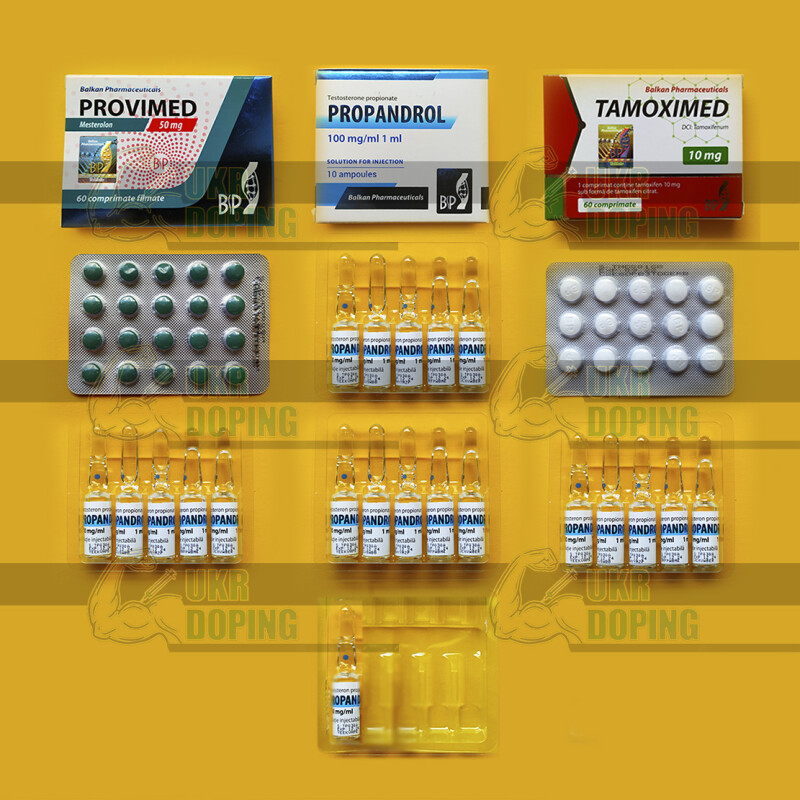Курс Пропіонат ( на 6 тижнів) на силу і рельєф Тестостерон Пропіонат (жарг. "Пропік") - один з найпоширеніших анаболічних стероїдів, широко застосовуваних у силових видах спорту, особливо - в бодібілдингу. Анаболическая і андрогенна активність препарату становить 100% від чистого тестостерону. Випускається в ін'єкційної формі, в слідстві чого препарат швидко потрапляє в кровотік і ефект відчувається практично миттєво. Є коротким ефіром тестостерону, що, на жаль, досить швидко виводить анаболик з організму. У помірних дозах надає незначну побочки, що поряд з масою позитивних функцій, робить його таким затребуваним серед спортсменів. Your browser doesn't support video. Please download the file: video/mp4 Основні ефекти, які спостерігаються на курсі даного стероїду: набір сухий і якісної м'язової маси; зберігає м'язову тканину, перешкоджаючи катаболическим процесам; надає рельєфність і прорісованності м'язів; стимулює процеси жиросжигания в організмі; зміцнює імунітет і загальний фізичний стан атлета; запобігає розвитку хвороб серцево-судинної системи; збільшує синтез білка в м'язах; підвищує рівень кисню в м'язах; збільшує кількість вільного тестостерону в крові; добре зберігає результати після курсу прийому. Як правильно приймати курс Курс Пропіонат 100 соло підходить як новачкам, бажаючим збільшити м'язові обсяги, так і досвідченим спортсменам, які хочуть зберегти м'язову масу в період підготовки до змагань, а також поліпшити якість і рельєф м'язів. Середня тривалість курсу Тестостерон пропіонат становить 6 тижнів. Даний препарат широко використовується в пауерліфтингу. За рахунок швидкого ефекту після введення стероїду, спортсмен може показувати хороші результати в силових видах спорту. Силовики найчастіше використовують Пропік, це єдиний препарат який може швидко підвищити силу і витривалість в залежності від обраних дозувань. Будучи коротким ефіром тестостерону, відрізняється коротким терміном дії. Тому рекомендується застосування препарату кожен день або через день, залежно від цілей прийому і особливостей організму спортсмена. Таке нетривалий дію стероїду є як мінусом, так і плюсом для атлетів. Звичайно, для досвідчених атлетів необхідність частого вживання - скоріше мінус. У той же час це може бути позитивним моментом для новачків, які тільки почали свій перший курс і оцінюють, як відгукнеться їх організм на даний препарат. Спортсмени любителі в більшості випадків використовують середню дозування 100 мг через день, або три рази на тиждень. Застосування занижених дозувань може привести до зниження самого ефекту від курсу і результат буде мало помітним. В даному курсі на 6 тижнів для спортсмена середнього рівня, рекомендується використовувати Пропіонат в дозуванні 100 мг через день (одна ампула через день)...